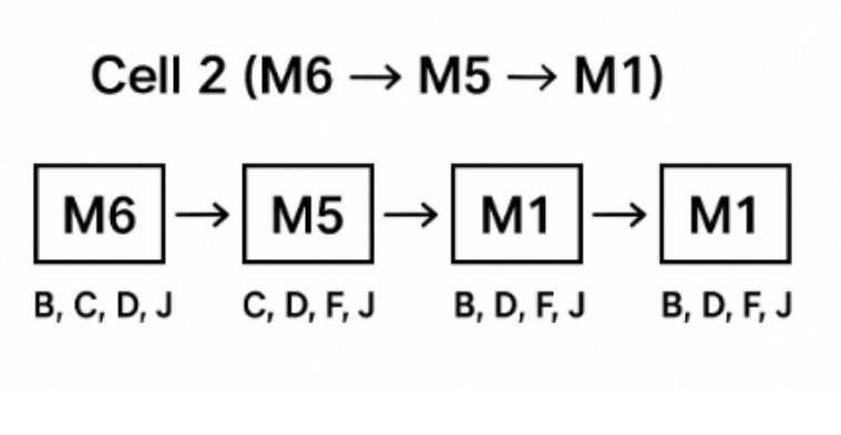 - Bypassing: move that jumps forward over the immediate next machine (e.g., M3 → M7 when M3→M2→M4→M7 is sequence).